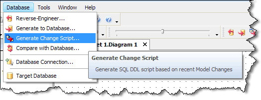 ModelRight 4.1 provides the ability to generate SQL DDL based on any Model changes. This can be very useful if you want to change the database to reflect the changes you recently made to your Model. If you know that your database hasn't changed and you just want to change it to reflect changes you just made in your Model, you can do so without having to go through the Compare with Database process/wizard.